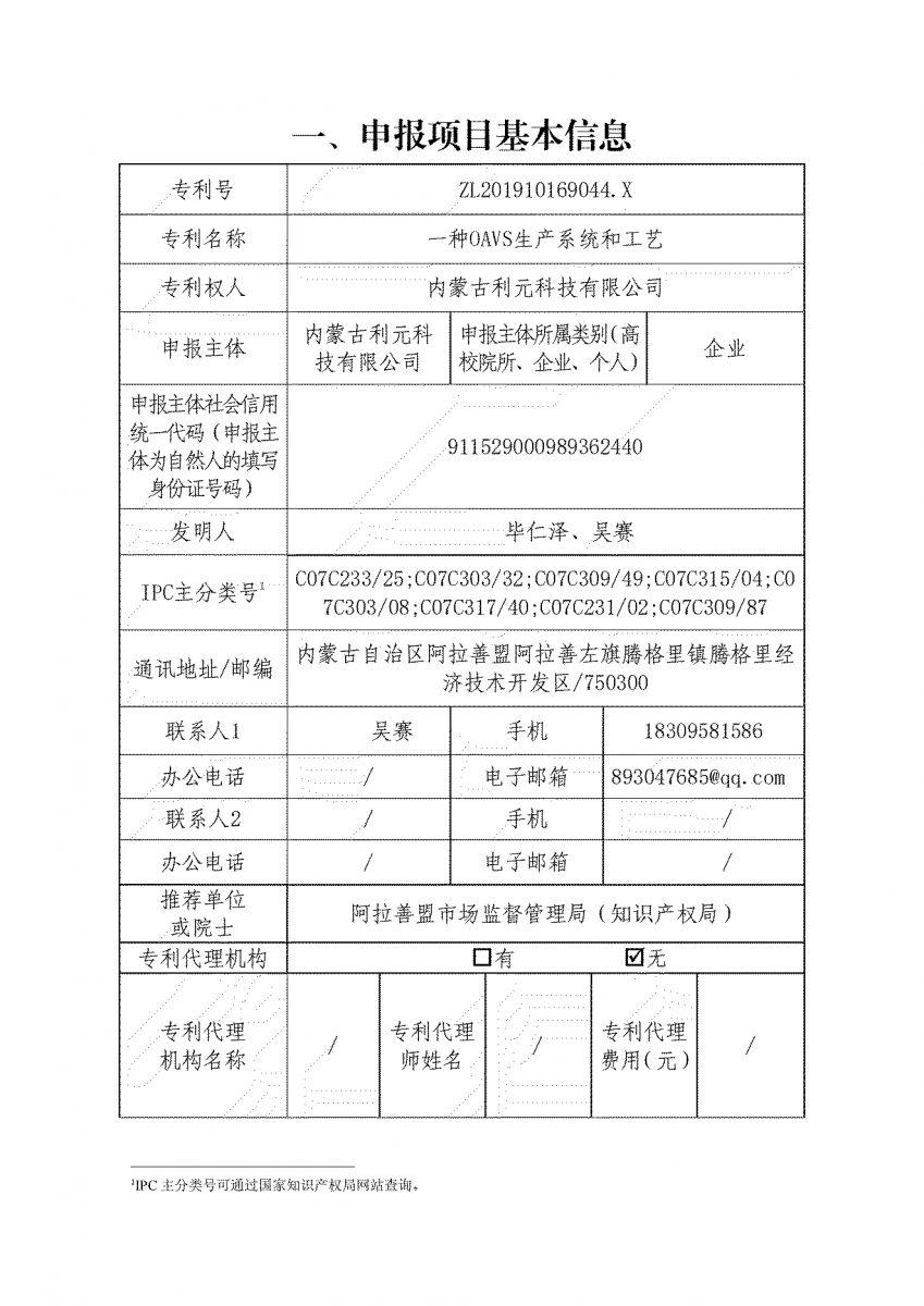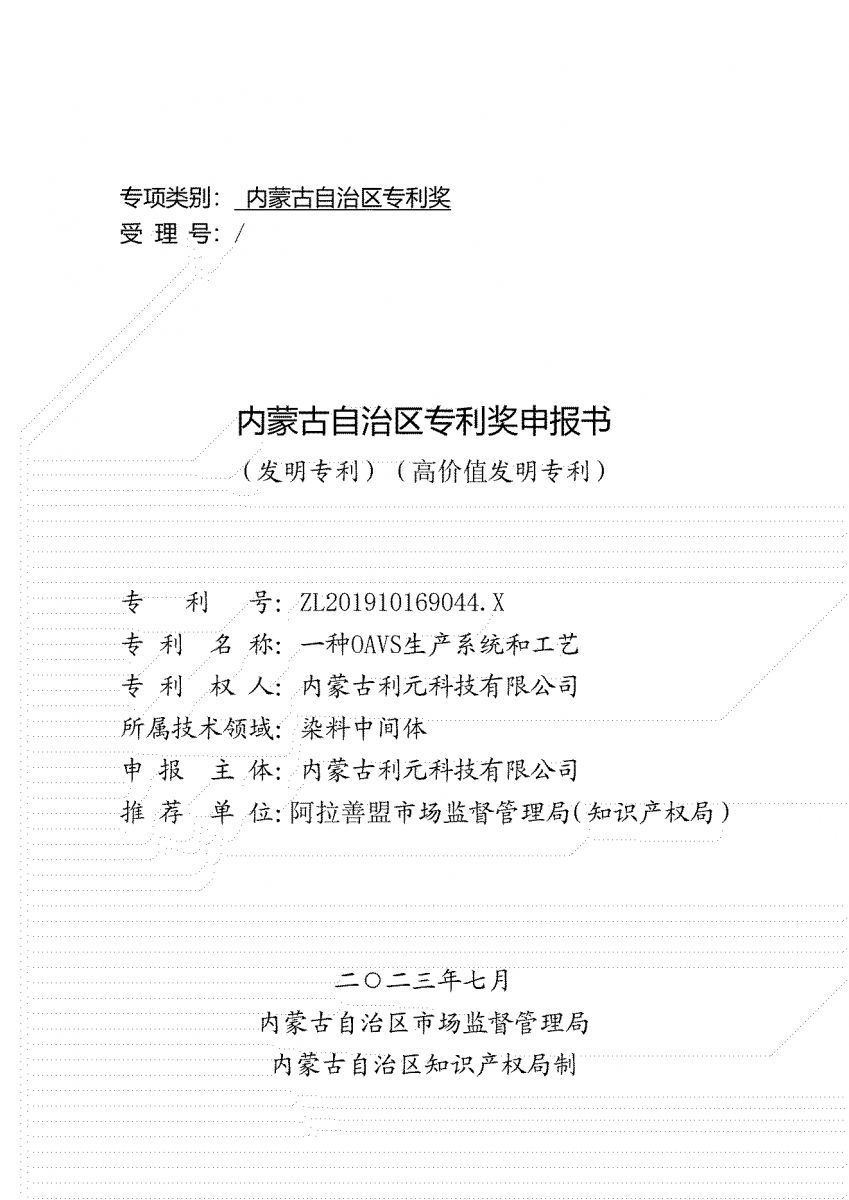內(nèi)蒙古自治區(qū)專利獎(jiǎng)申請書
